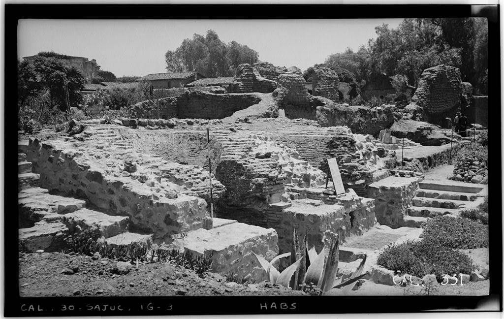 - Ruins of Industrial Shops, Mission San Juan Capistrano, CA (c. 1776) Photographer(s): Henry F. Withey, 1936 Photo description: Ruins of industrial shops, taken from the north west corner. – Mission San Juan Capistrano, Olive Street, between U.S. Highway 101 & Main Street, San Juan Capistrano, Orange County, CA. The image is from the initial Historic American Buildings Survey (HABS) which began during the Great Depression in December 1933 with the intent of putting one thousand out-of-work architects to work documenting “America’s antique buildings.” Mission San Juan Capistrano was founded in 1776, by the Spanish Catholics of the Franciscan Order. It was named for Saint John of Capistrano, a 14th-century theologian who resided in the Abruzzo region of Italy. Mission San Juan Capistrano was the 7th of 21 missions built in Alta California. The chapel, built in 1782, has the distinction of being home to the oldest building in California still in use today. Historic American Building Record (Library of Congress) Call Number: HABS CAL,30-SAJUC,1G–3